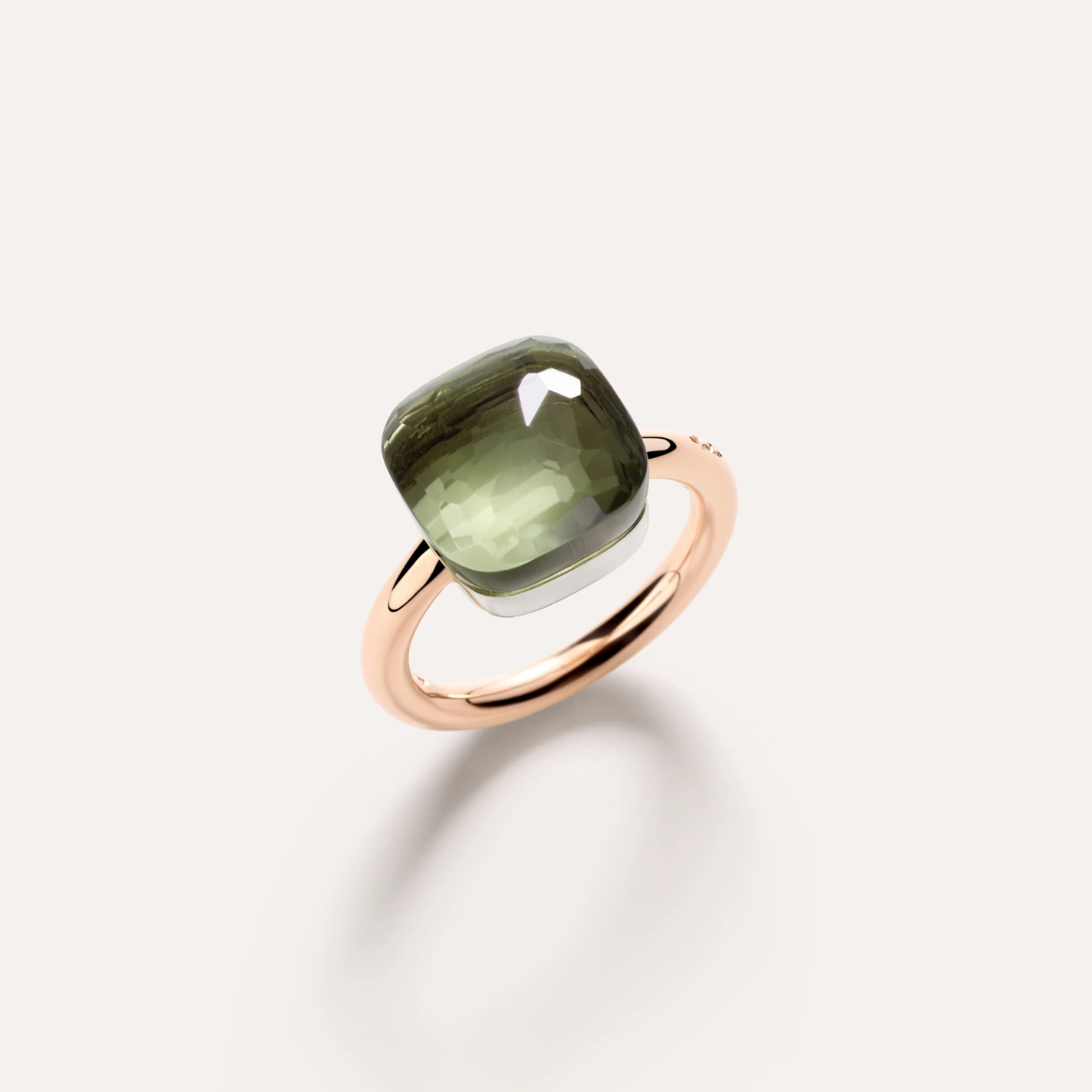Anello Pomellato Nudo Maxi in oro rosa e bianco 18kt con 1 prasiolite (≈10.9 ct). Misura 54.