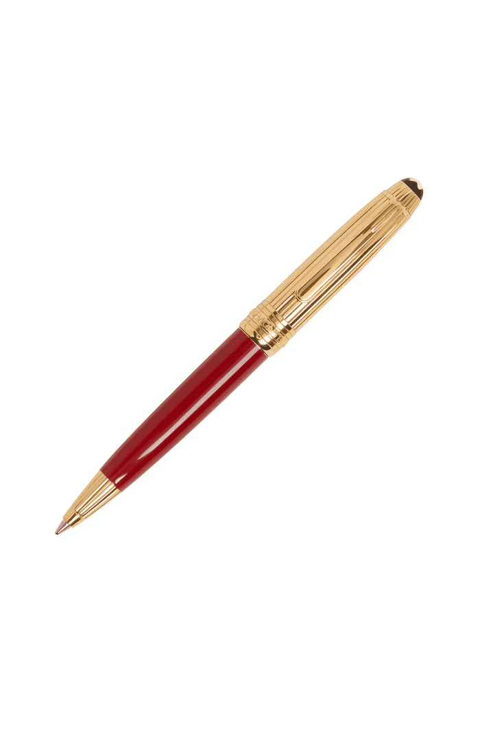 Penna a sfera Montblanc Meisterstuck Coral, clip e corpo in argento dorato, con laccatura rosso corallo. Lunghezza di circa 10,5 cm. Referenza: 5859